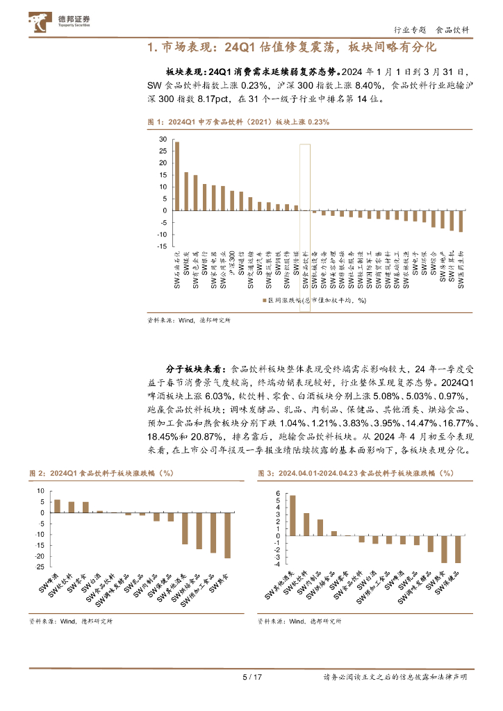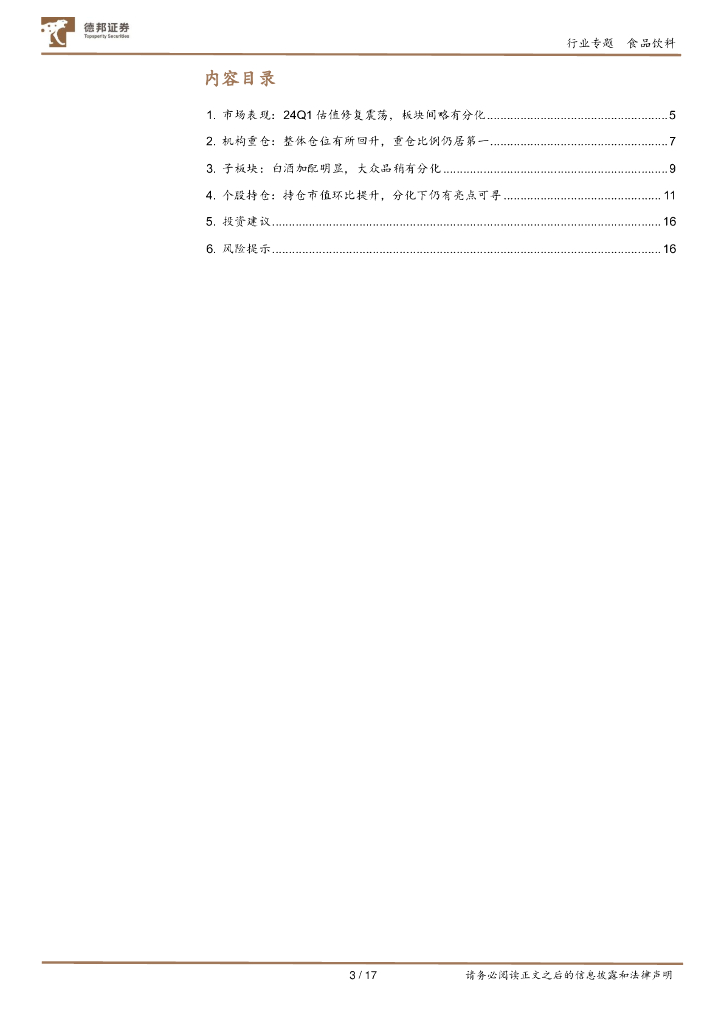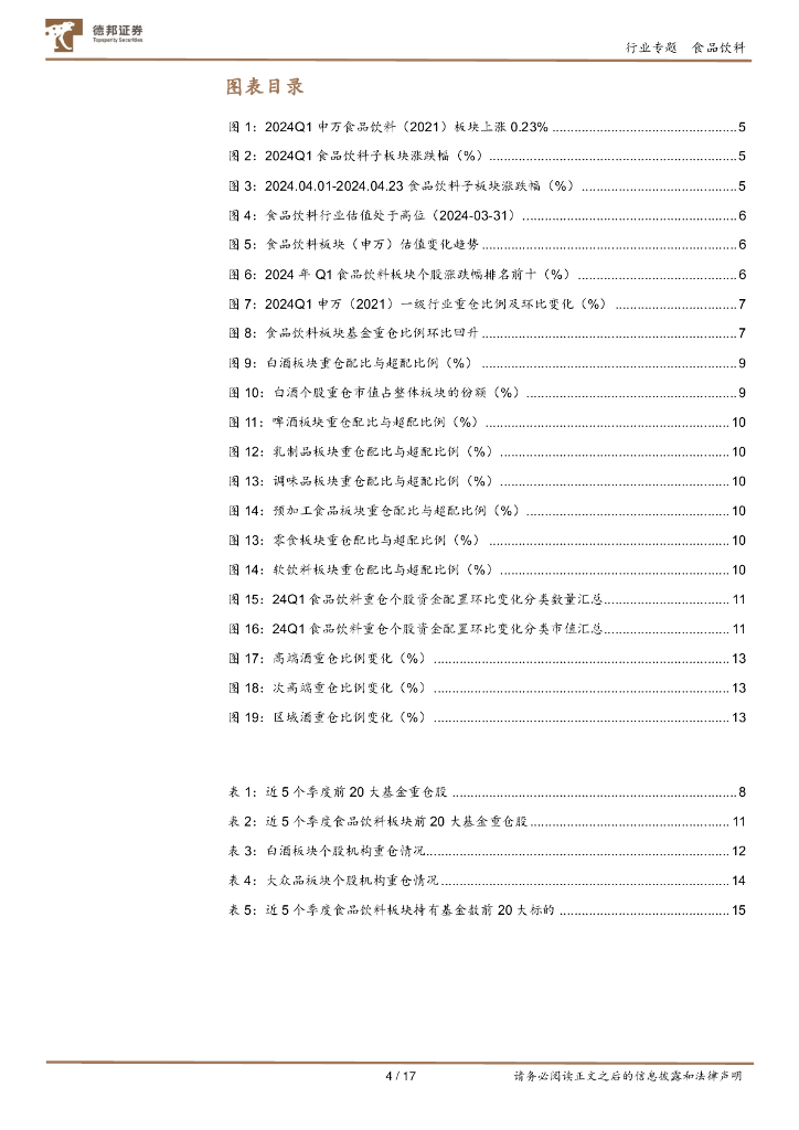 德邦证券:食品饮料行业专题:2024Q1基金重仓分析:持仓环比增配明显,赛道龙头更受青睐.pdf