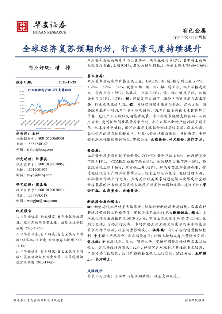 华安证券:有色金属行业周报:全球经济复苏预期向好,行业景气度持续提升.pdf
