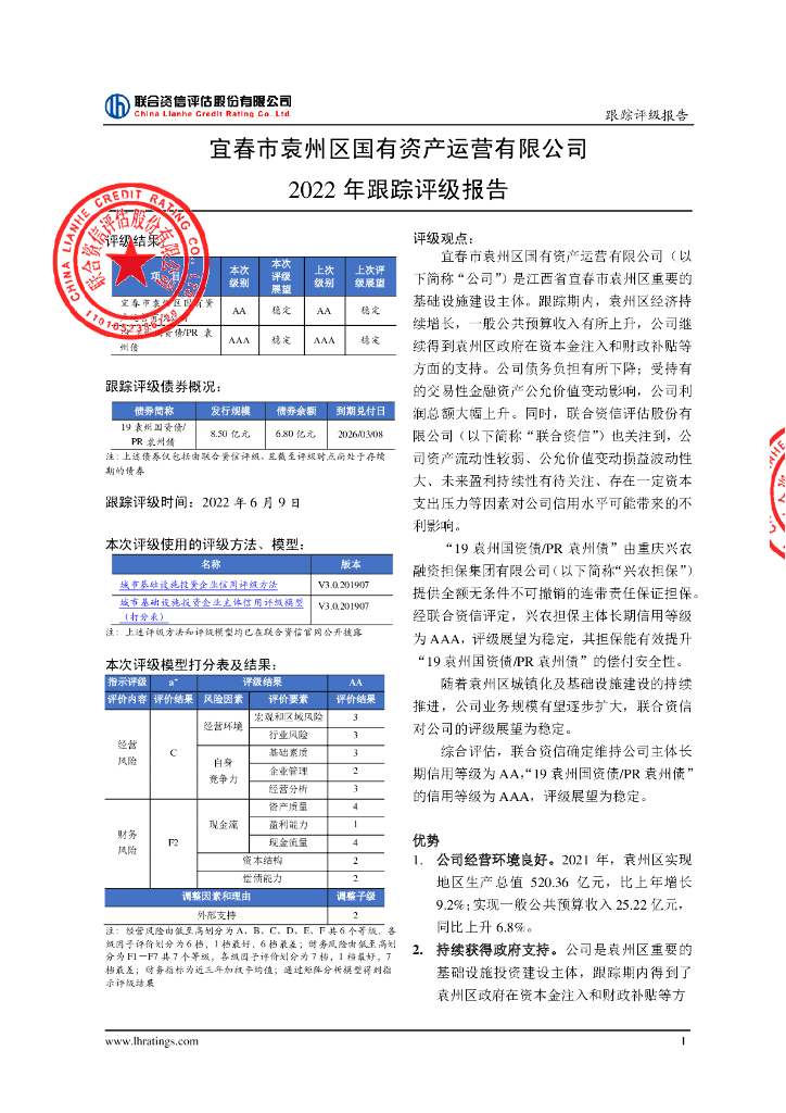 联合资信:宜春市袁州区国有资产运营有限公司2022年跟踪评级报告.pdf