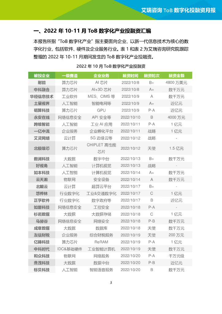 艾瑞咨询:2022年10-11月ToB数字化产业投融资月报.pdf