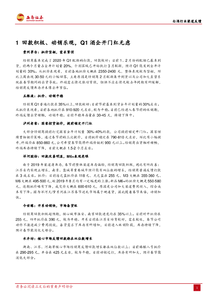 西南证券:白酒行业渠道反馈:动销超预期+估值切换,白酒确定性收益明显.pdf