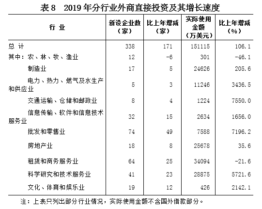 全年外商直接投资新设立企业338家,比上年增加171家。实际使用外商直接投资金额15.11亿美元,比上年增长106.1%。
