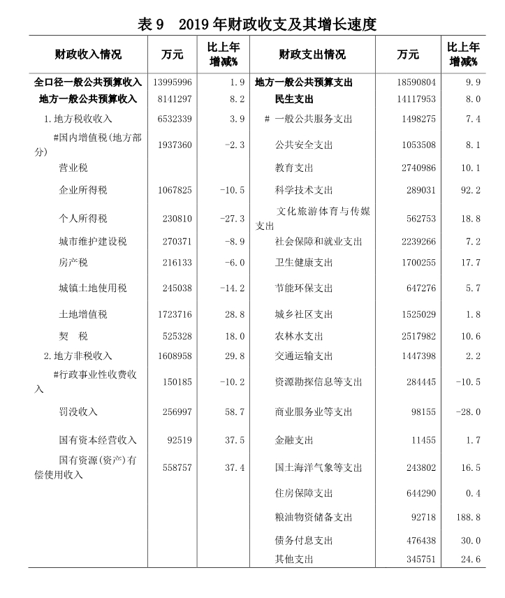 本公报中财政数据来自省财政厅,金融机构存贷款数据来自人行海口中心支行,金融机构效益数据、保险业数据来自中国银保监会海南监管局,上市公司数据来自中国证监会海南监管局,价格、居民收支数据来自海南调查总队,水产品数据来自省农业农村厅,森林、野生动植物、自然保护区数据来自省林业局,货物、旅客运输及周转量、港口吞吐量数据来自省交通厅、粤海铁公司、南航海南公司、海航公司,邮电通信数据来自省邮政管理局、省通信管理局,重点项目来自省发改委,星级宾馆酒店、文化体育等数据来自省旅文厅,对外经济数据来自省商务厅,进出口数据来自海口海关,保障性住房、城镇垃圾处理、建成区绿化覆盖率数据来自省住建厅,城镇污水处理数据来自省水务厅,教育数据来自省教育厅,卫生数据来自省卫健委,社会救助数据来自省民政厅,就业数据来自省人社厅,医疗保险数据来自省医疗保障局,农村扶贫数据来自省扶贫办,科技数据来自省科技厅,环境保护数据来自省生态环境厅,文明生态村数据来自省文明办,安全生产数据来自省应急厅,其他数据来自省统计局。