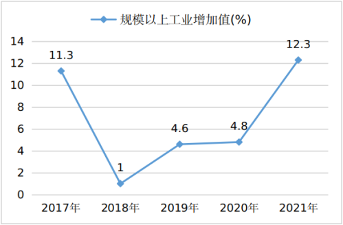 图3 2017-2021年全市规模以上工业增加值增长速度