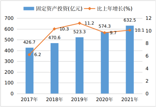 图7 2017-2021年全市固定资产投资(不含跨市、农户)增长速度