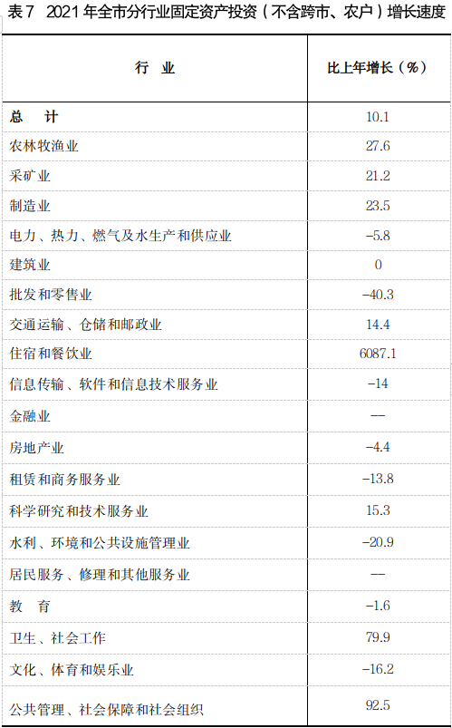 全年全市固定资产投资(不含跨市、农户)比上年增长10.1%。
