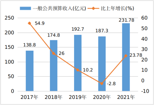 图8 2017-2021年全市一般公共预算收入及其增长速度