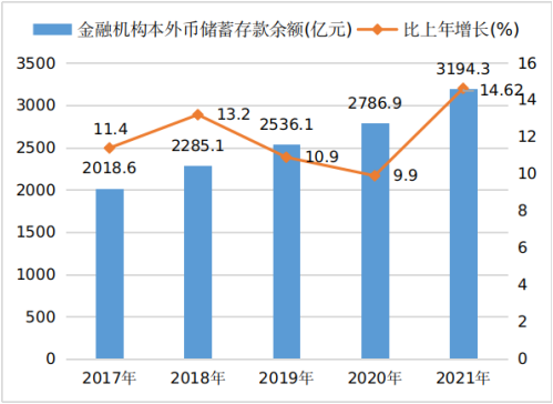 图9 2017-2021年全市金融机构本外币储蓄存款余额及其增长速度