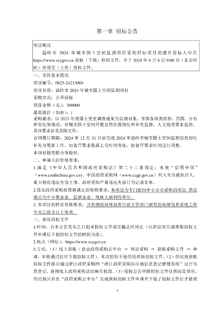 温岭市2024年城市国土空间监测项目招标文件.pdf