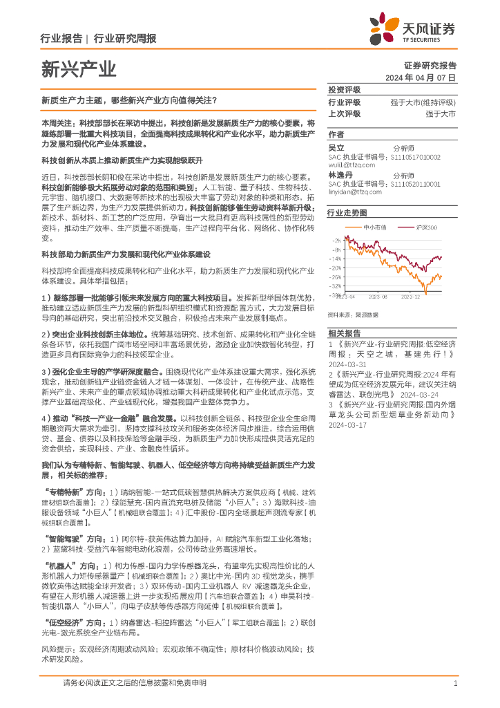 天风证券:科技行业新兴产业研究周报:新质生产力主题,哪些新兴产业方向值得关注?.pdf
