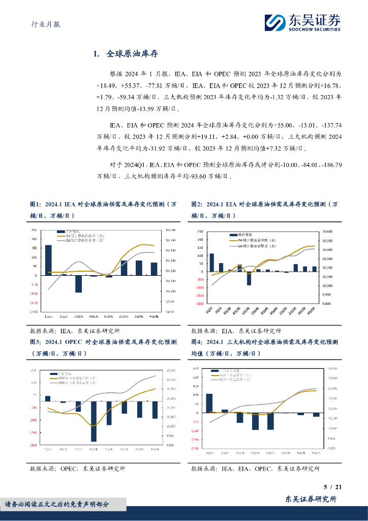 东吴证券:石油石化行业月报:原油月报:三大机构预计24Q1原油仍保持大幅去库.pdf