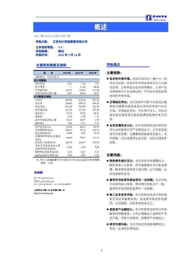新世纪:江苏先行控股集团有限公司主体信用评级报告.pdf