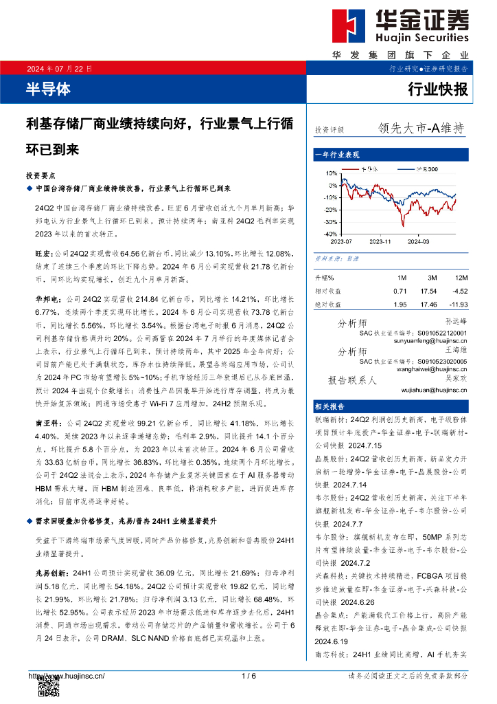 华金证券:半导体:利基存储厂商业绩持续向好,行业景气上行循环已到来.pdf