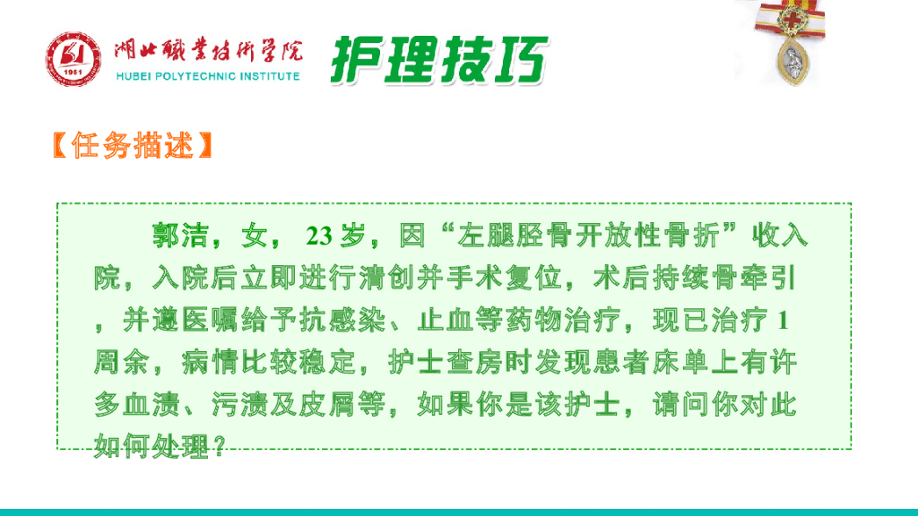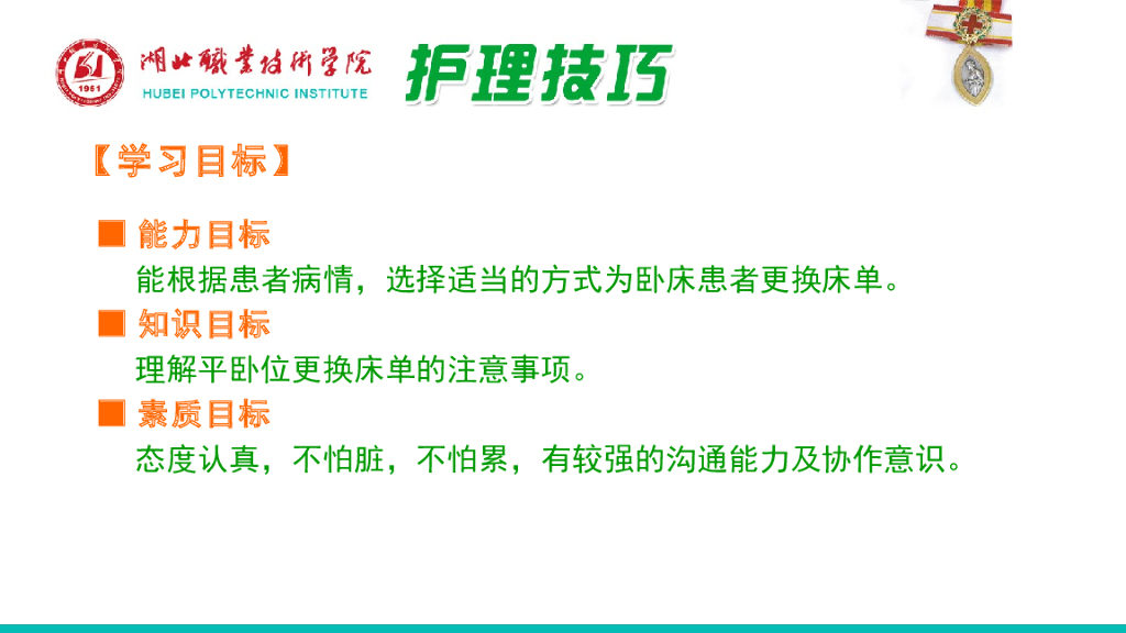 《护理技巧》演示文稿-子任务二 平卧位患者更换床单法.pdf