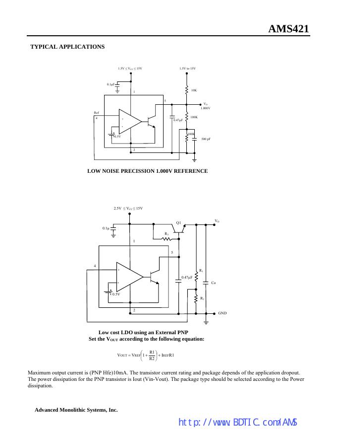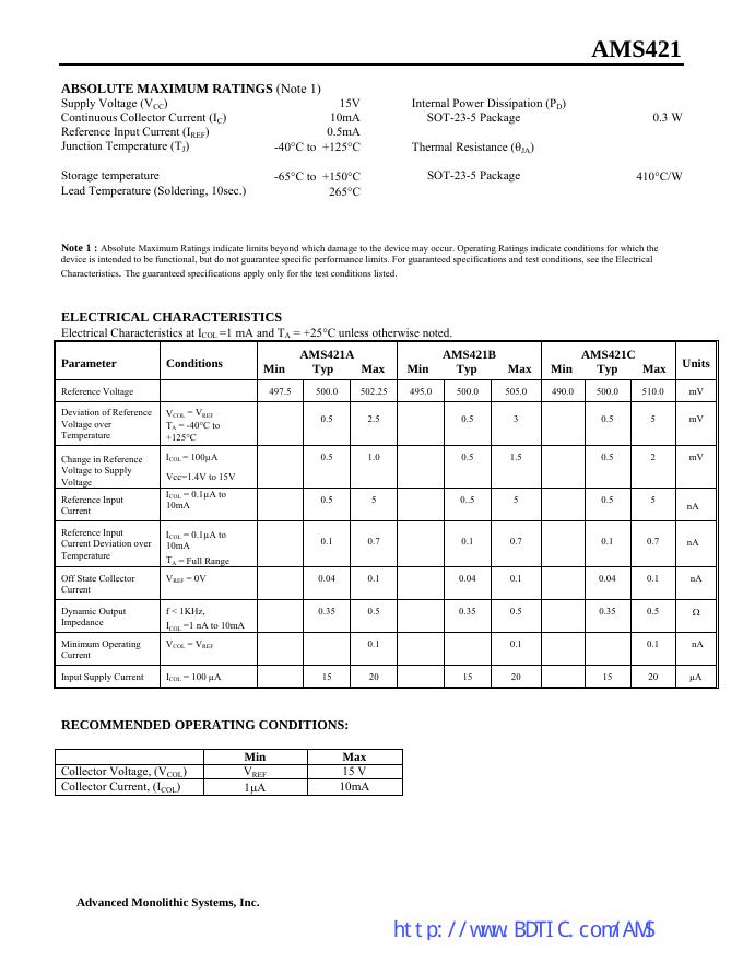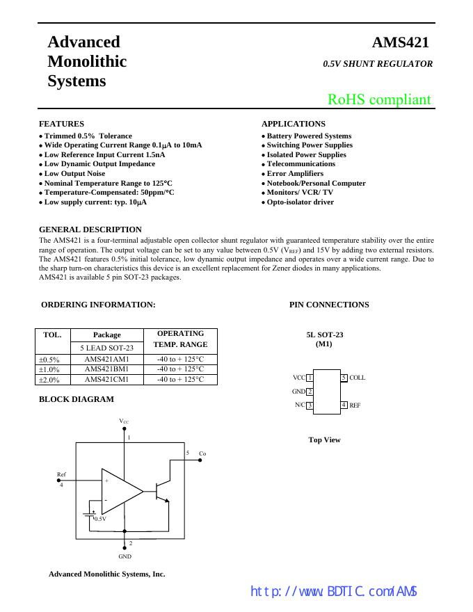 AMS421 0.5V SHUNT REGULATOR 数据手册.pdf