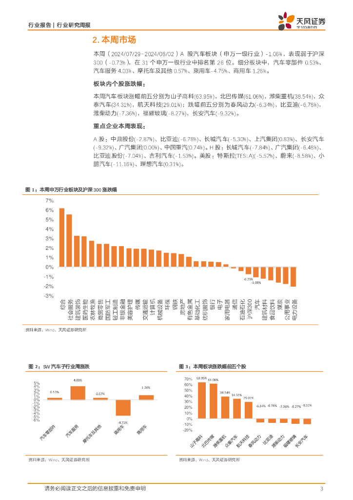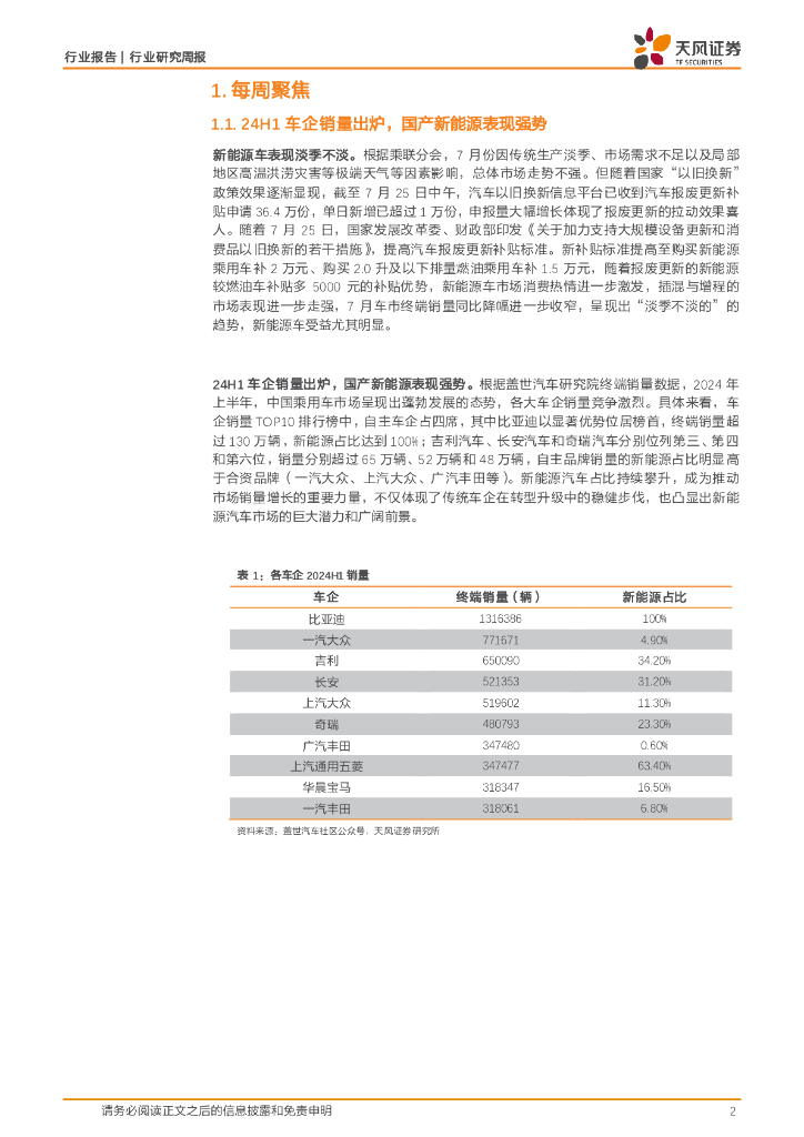 天风证券:汽车行业周报:24H1车企销量出炉,国产新能源表现强势.pdf