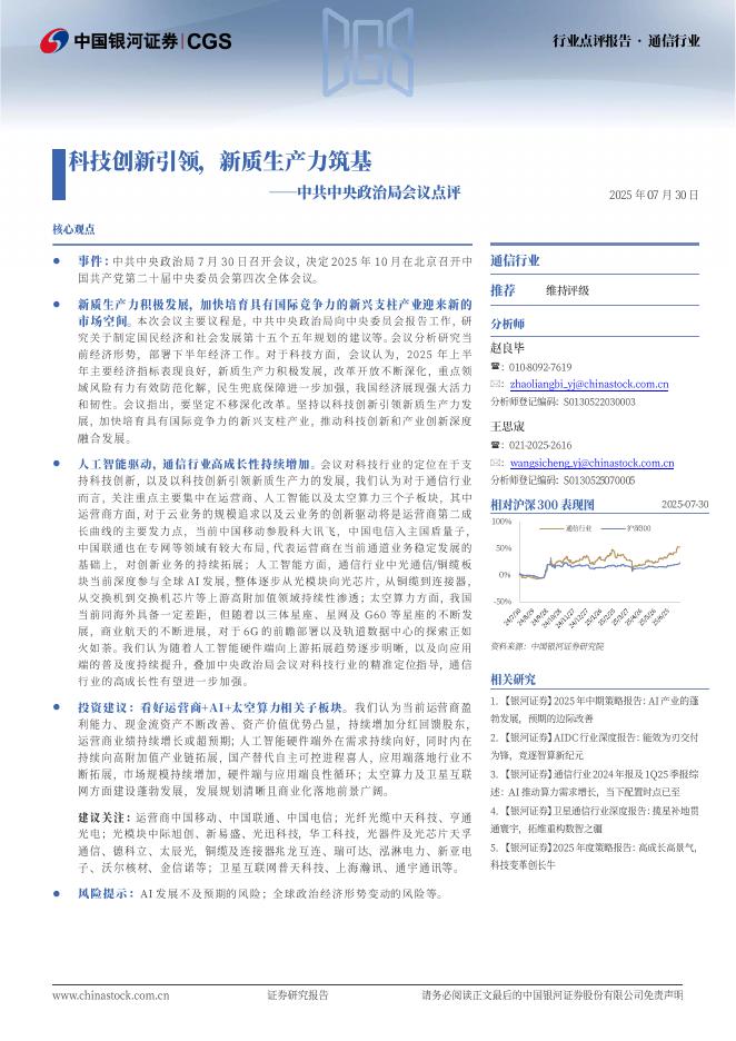中国银河:通信行业行业点评报告:中共中央政治局会议点评-科技创新引领,新质生产力筑基.pdf