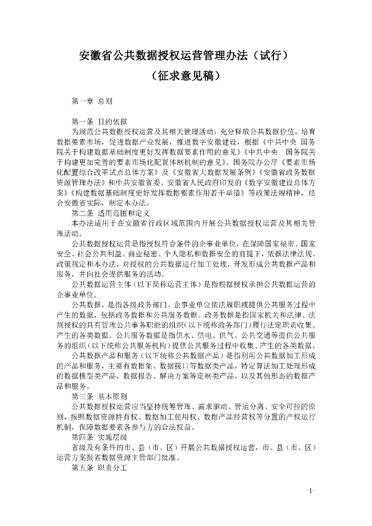 安徽省公共数据授权运营管理办法(试行)(征求意见稿).pdf