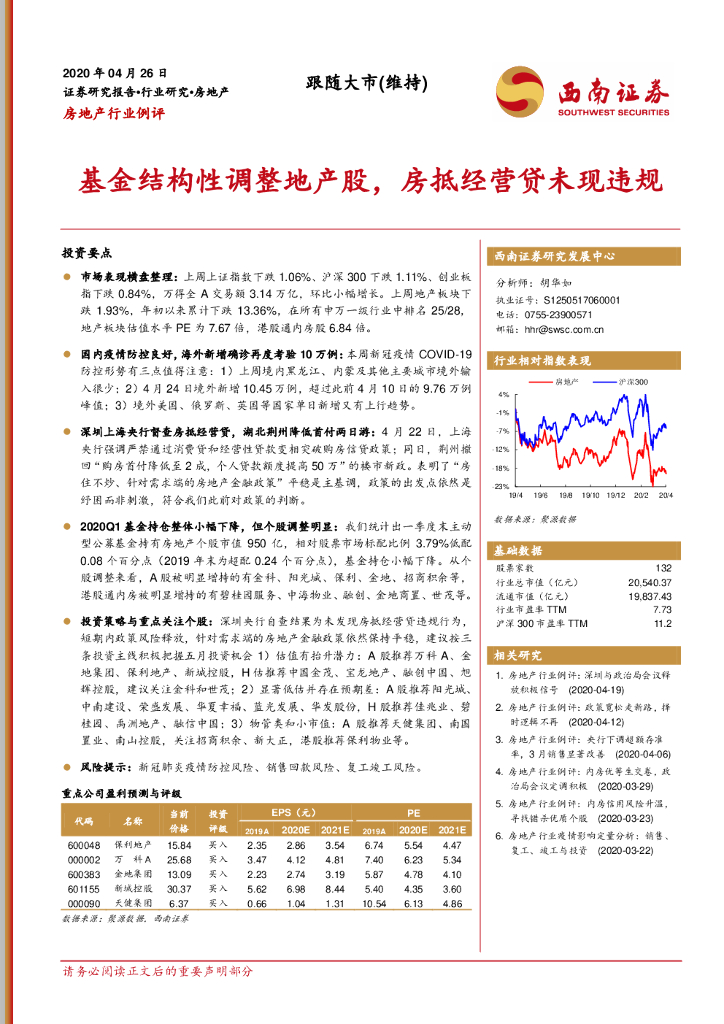 西南证券:房地产行业例评:基金结构性调整地产股,房抵经营贷未现违规.pdf