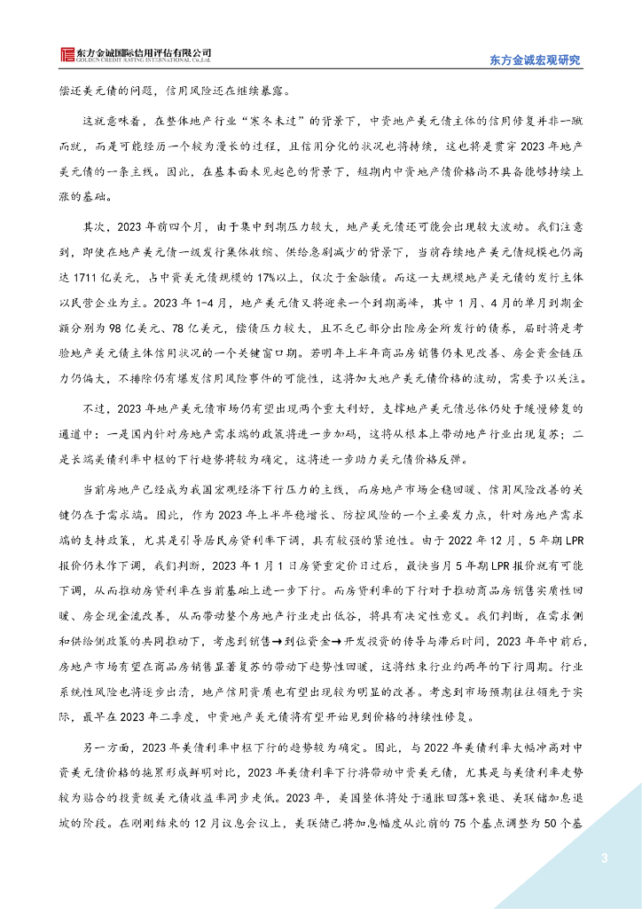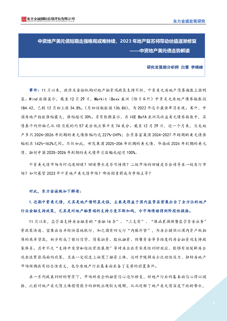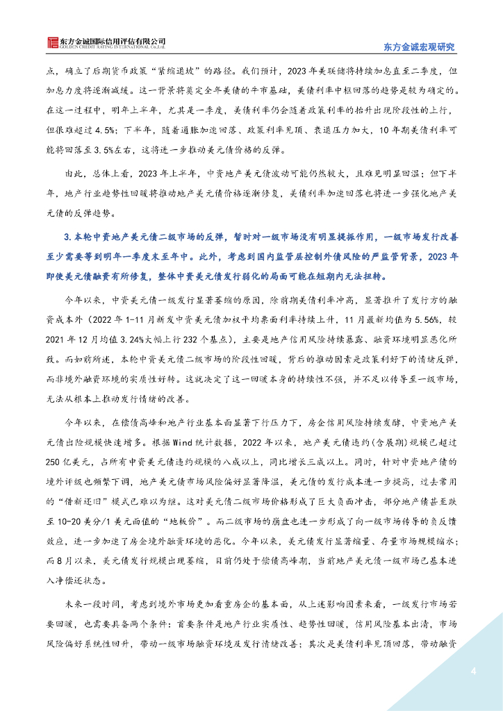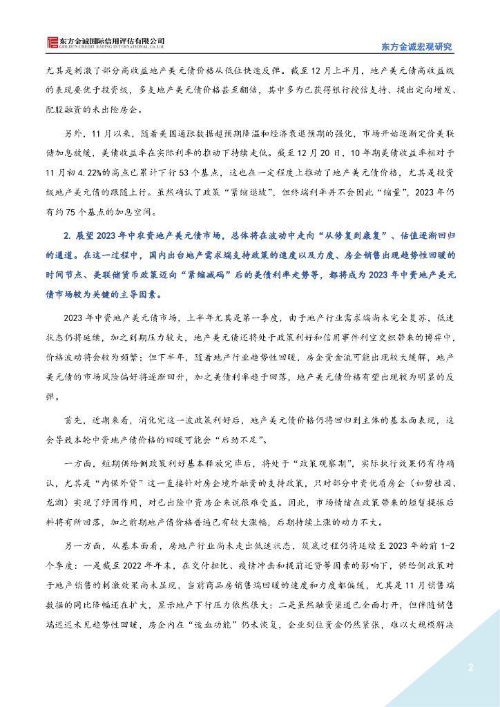 东方金诚:中资地产美元债短期走强格局或难持续,2023年地产复苏将带动估值逐渐修复.pdf