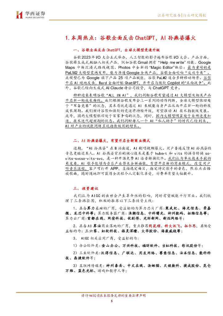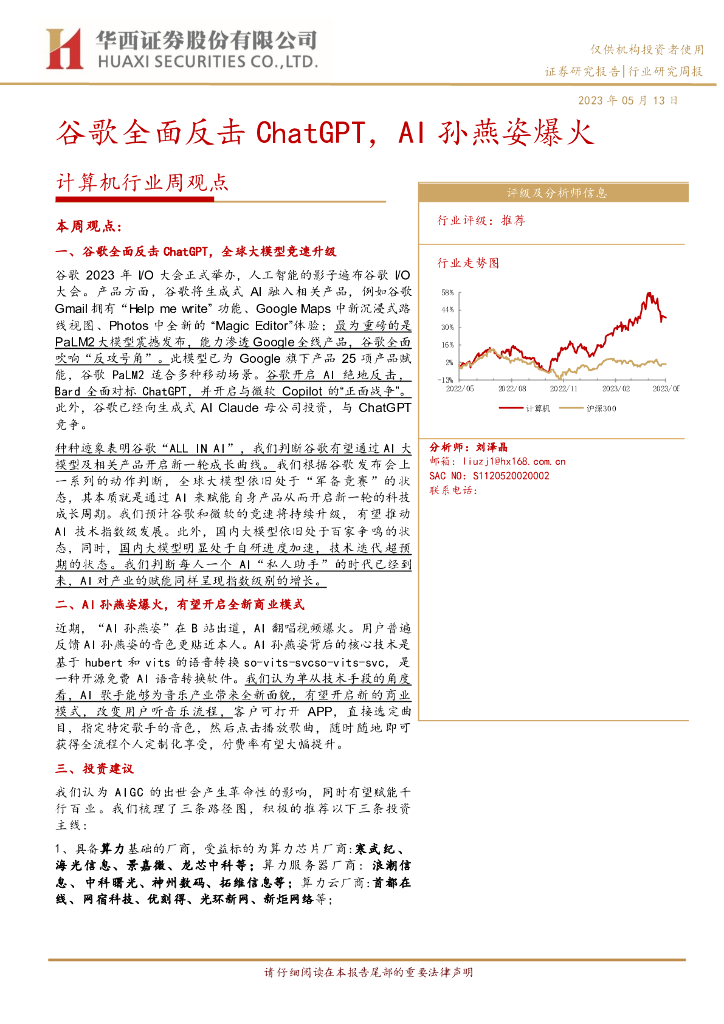 华西证券:计算机行业周观点:谷歌全面反击ChatGPT,AI孙燕姿爆火.pdf