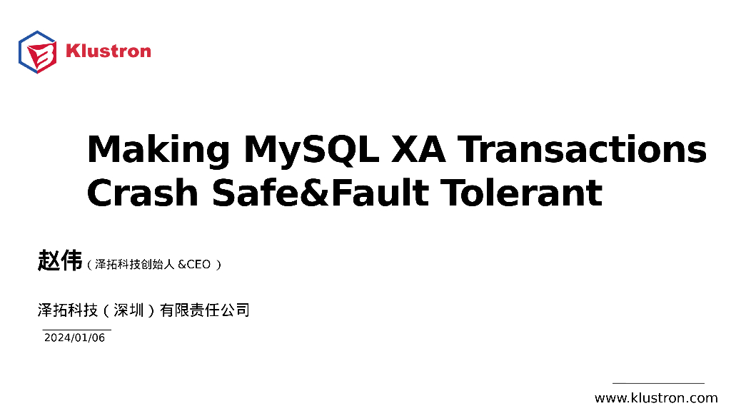 泽拓科技-赵伟:Making MySQL XA Transactions Crash Safe&Fault Tolerant.ppt