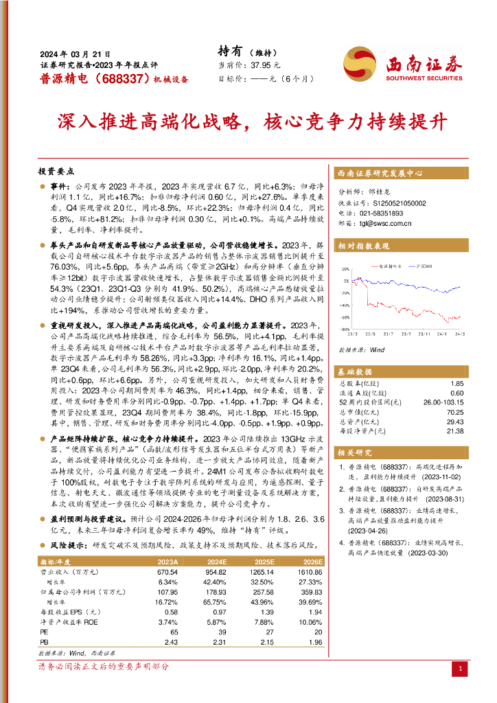 西南证券:普源精电(688337)-深入推进高端化战略,核心竞争力持续提升.pdf