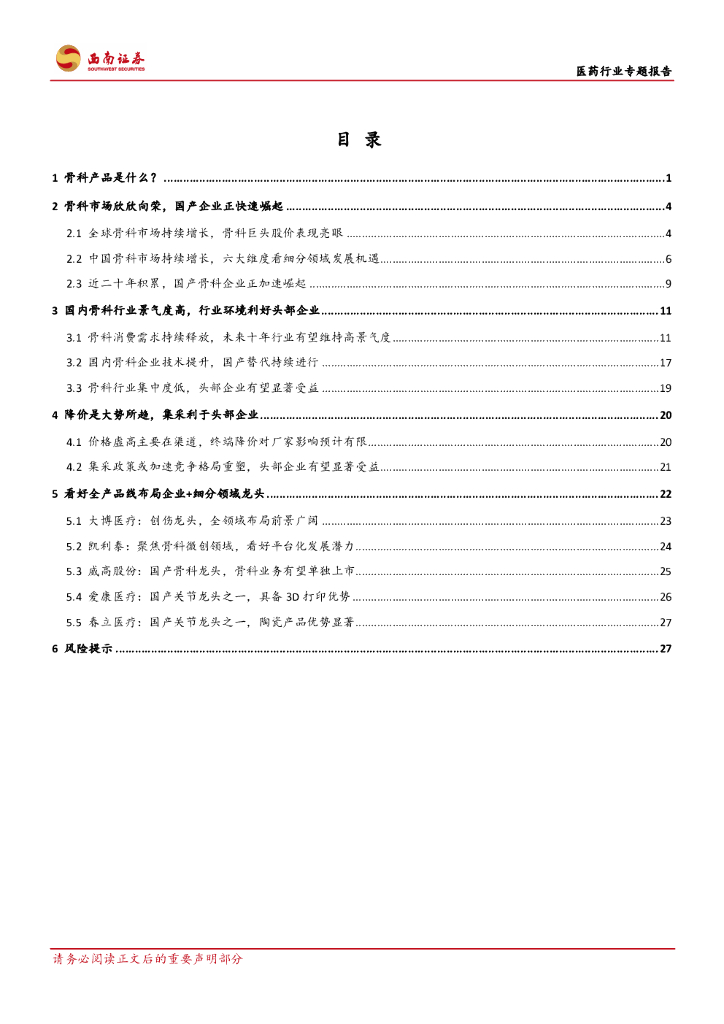 西南证券:医药行业专题报告:骨科行业景气度高,头部企业迎来发展良机.pdf