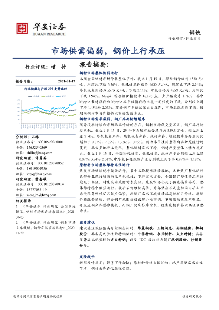 华安证券:钢铁行业周报:市场供需偏弱,钢价上行承压.pdf