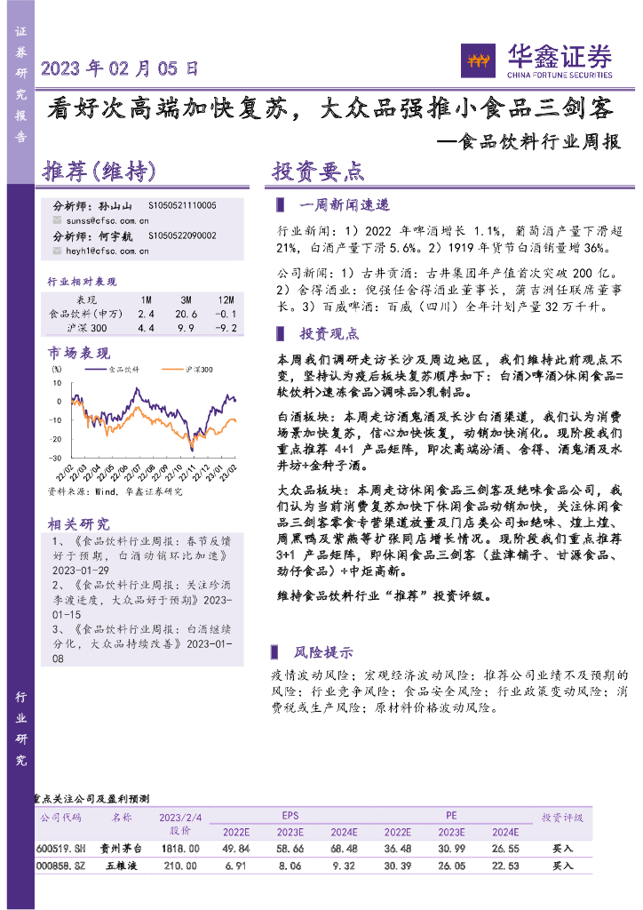 华鑫证券:食品饮料行业周报:看好次高端加快复苏,大众品强推小食品三剑客.pdf