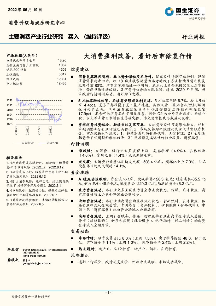 国金证券:主要消费产业行业研究:大消费盈利改善,看好后市修复行情.pdf