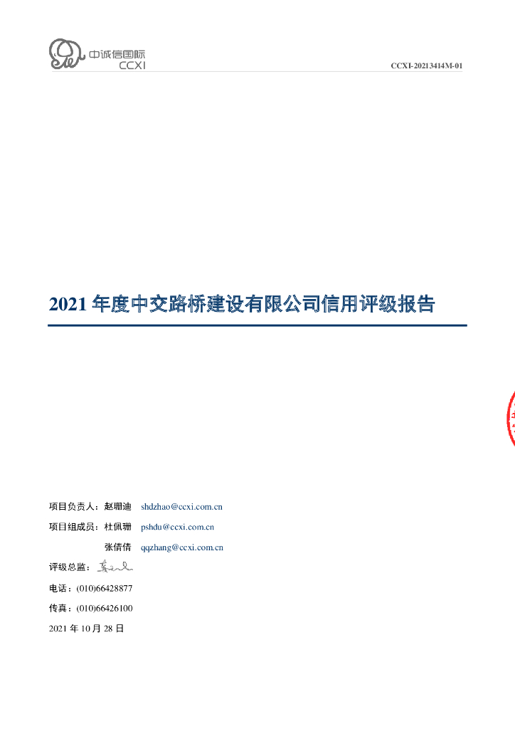 中诚信:2021年度中交路桥建设有限公司信用评级报告.pdf
