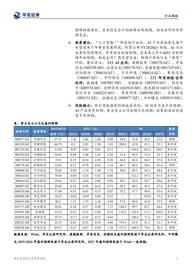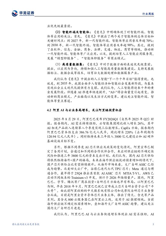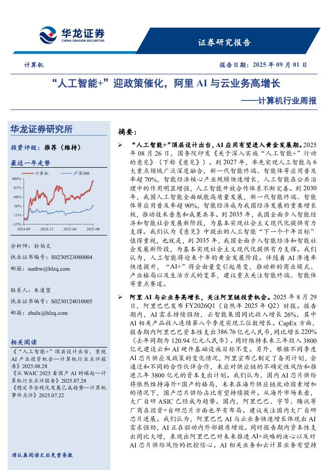 华龙证券:计算机行业周报:“人工智能+”迎政策催化,阿里AI与云业务高增长.pdf