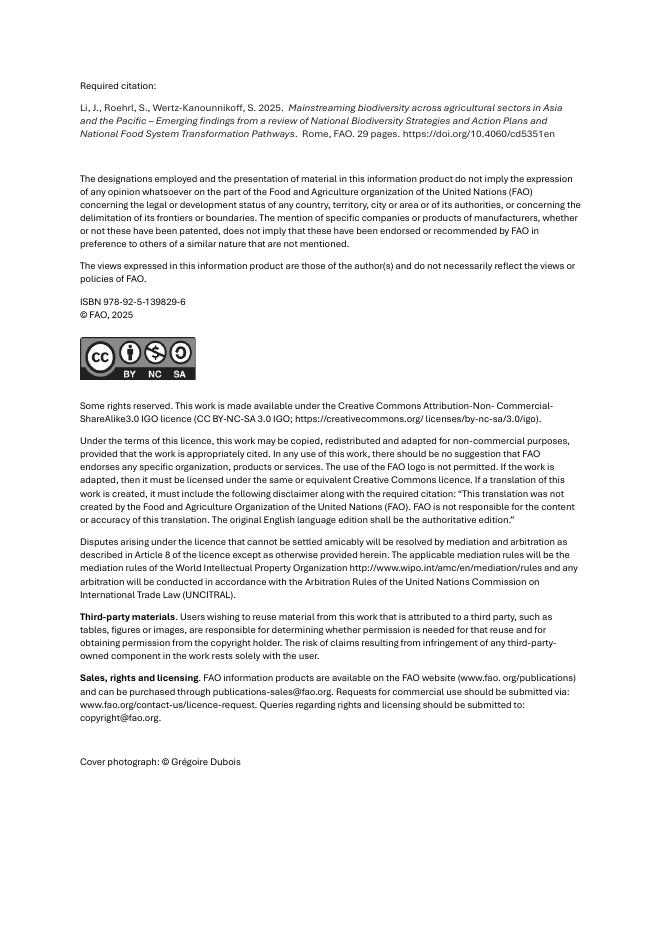 FAO联合国粮农组织:2025年在亚洲和太平洋地区跨农业领域的生物多样性主流化报告(英文版).pdf
