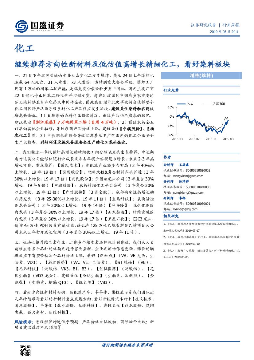 国盛证券:化工行业周报:继续推荐方向性新材料及低估值高增长精细化工,看好染料板块.pdf