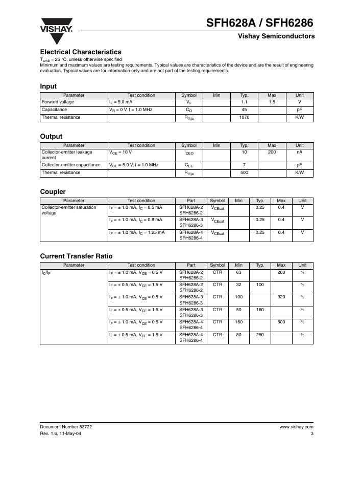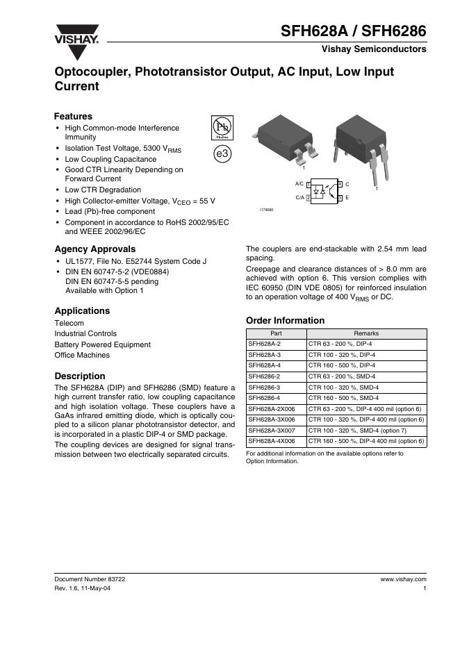 VISHAY - SFH628A / SFH6286 数据手册.pdf