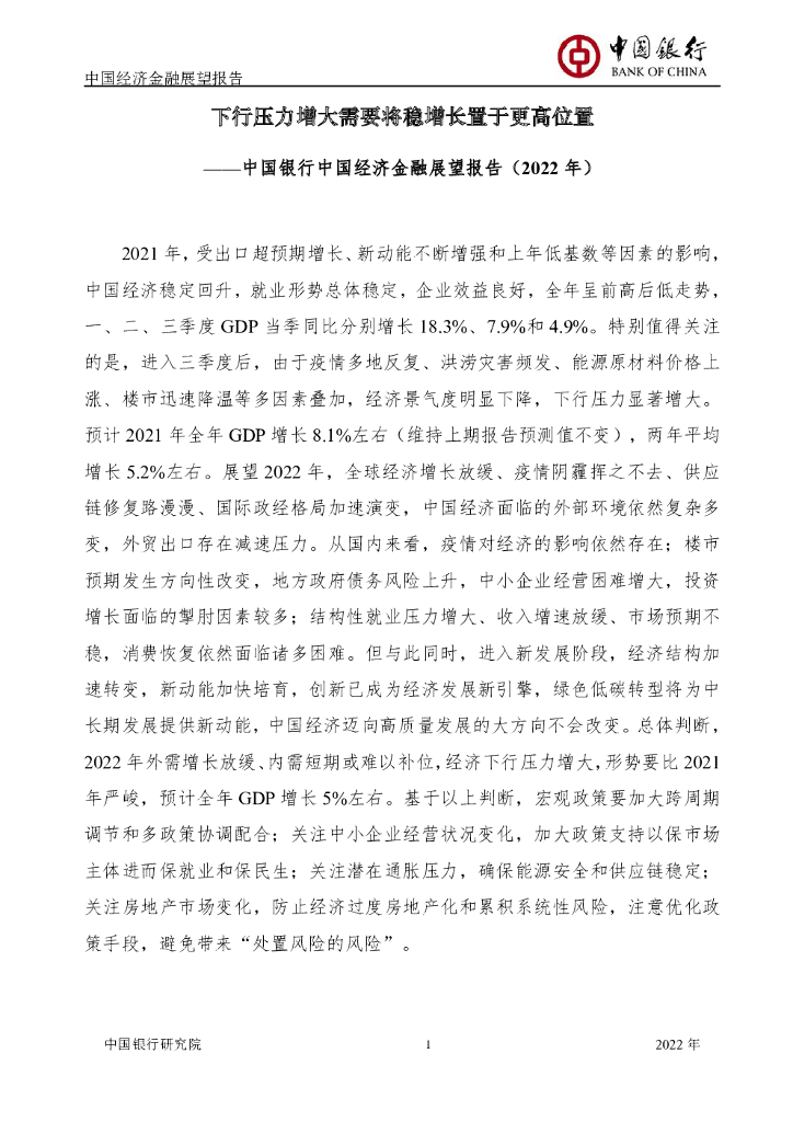 中国银行:中国经济金融展望报告2022年年报(总第49期).pdf