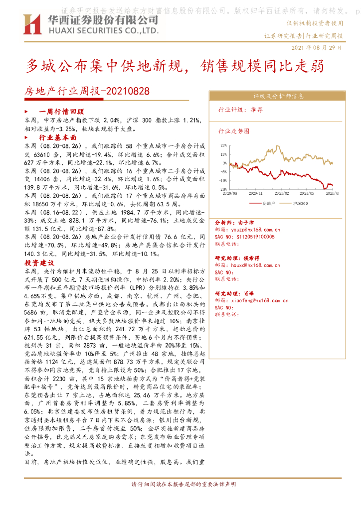 华西证券:房地产行业周报:多城公布集中供地新规,销售规模同比走弱.pdf