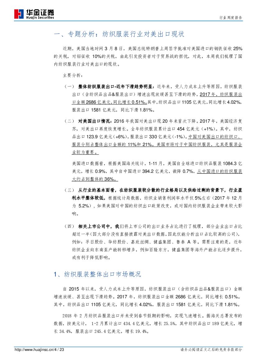 华金证券:纺织服装行业周度报告:2月出口纺织品服装同比增加85.3%,1~2月累计同比增长24.5%.pdf