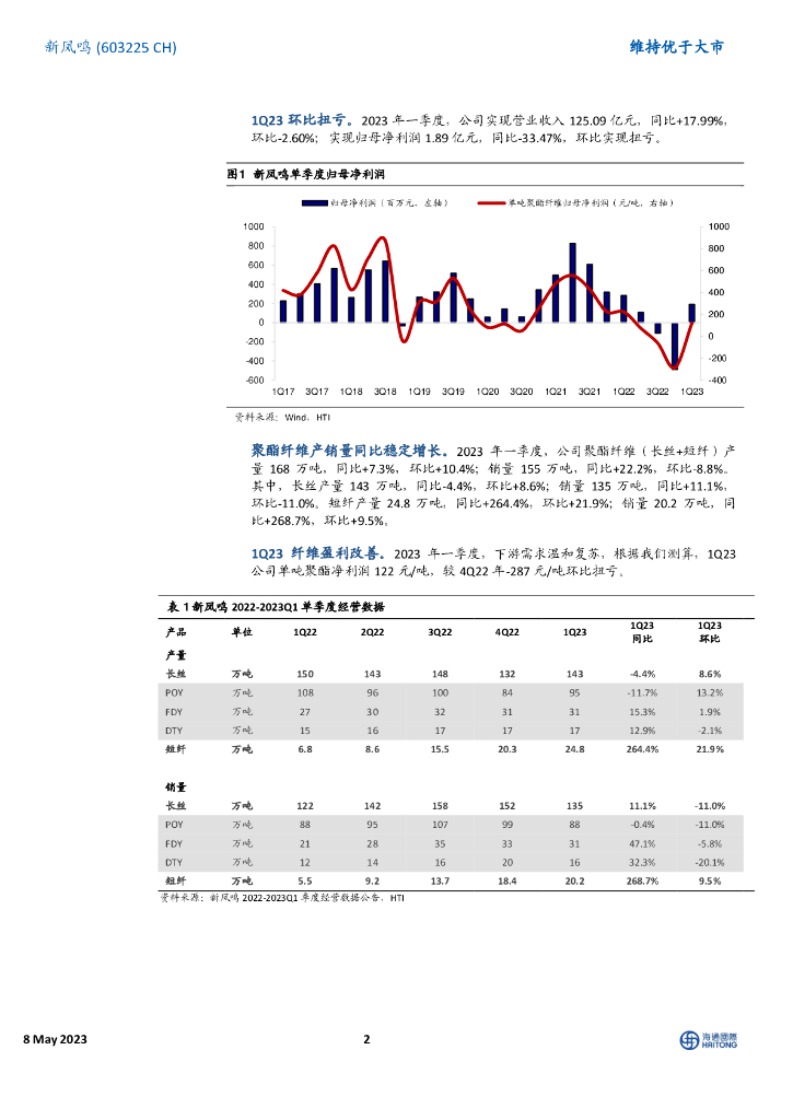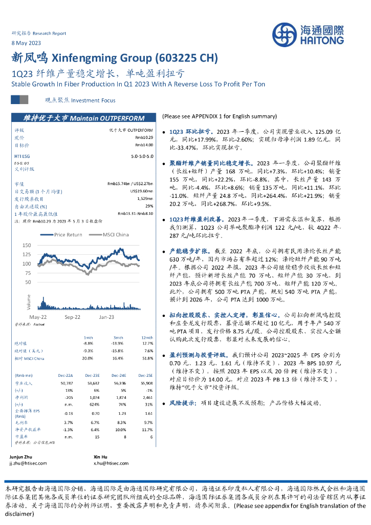 海通国际:新凤鸣(603225)-1Q23纤维产量稳定增长,单吨盈利扭亏.pdf