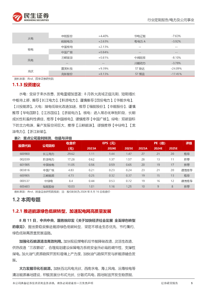 民生证券:电力及公用事业行业周报(24WK33):加速绿色转型,安徽试点新能源电力中长期交易.pdf