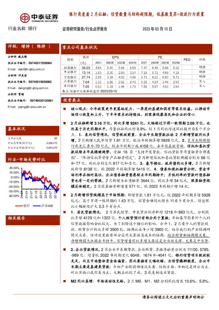 中泰证券:银行角度看2月社融:信贷数量与结构超预期,低基数复苏+投放行为前置.pdf