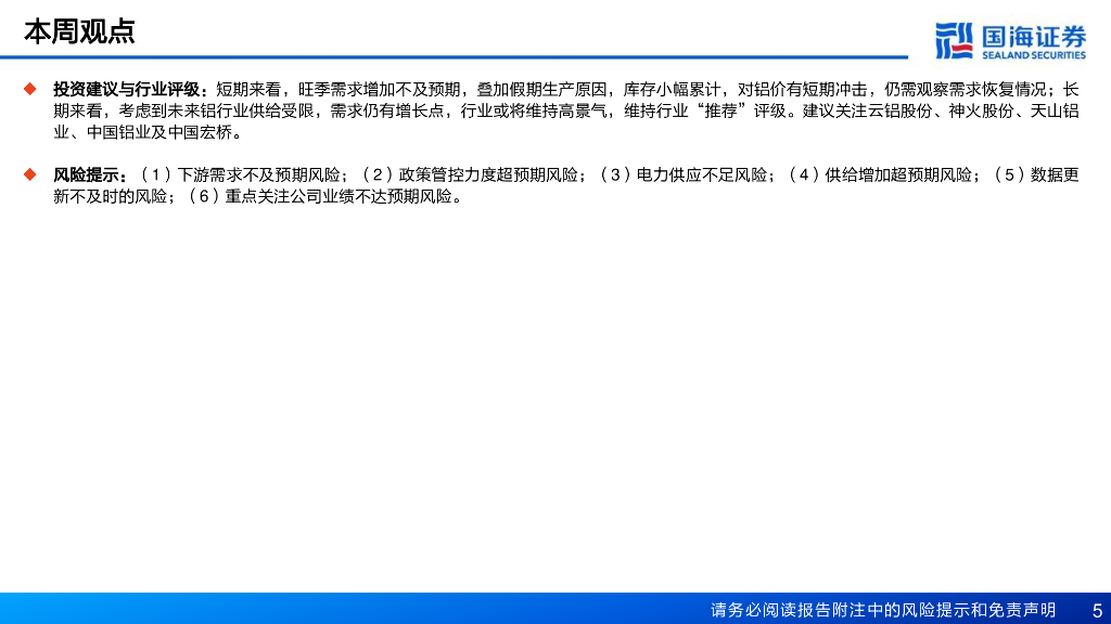 国海证券:铝行业周报:短期累库冲击价格,关注需求恢复及开工提升.pdf