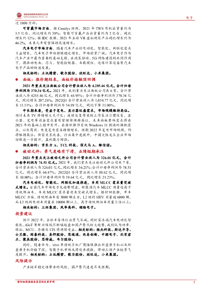 东亚前海证券:电子行业2021年报及2022Q1季报综述:半导体板块业绩领跑行业,汽车电子提振行业高景气.pdf