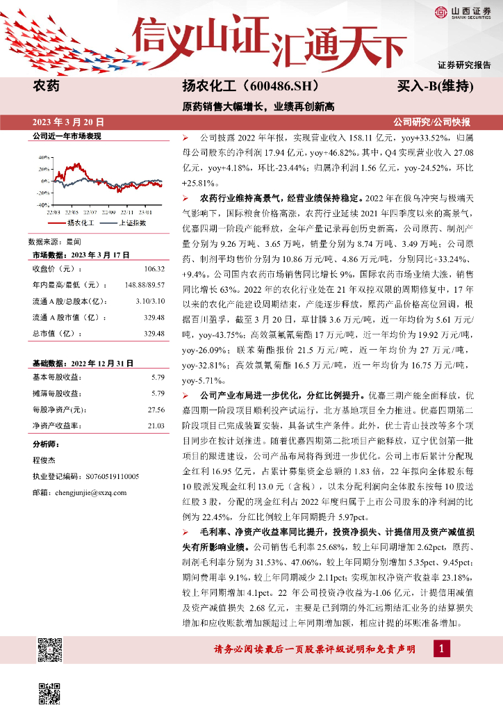山西证券:扬农化工(600486)-原药销售大幅增长,业绩再创新高.pdf