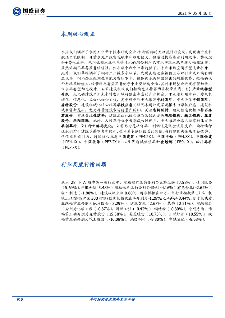 国盛证券:建筑装饰行业周报:水泥减排技术不断储备,钢价波动促钢构行业集中度提升.pdf