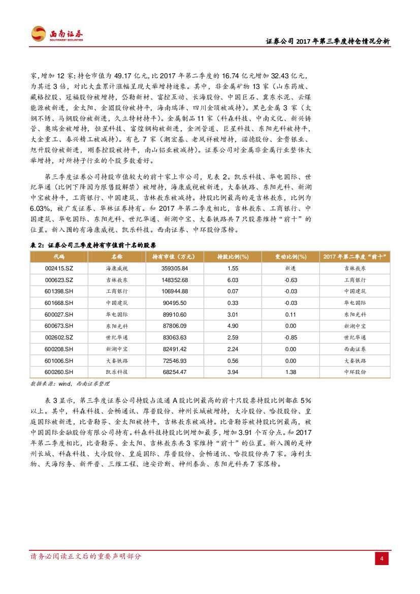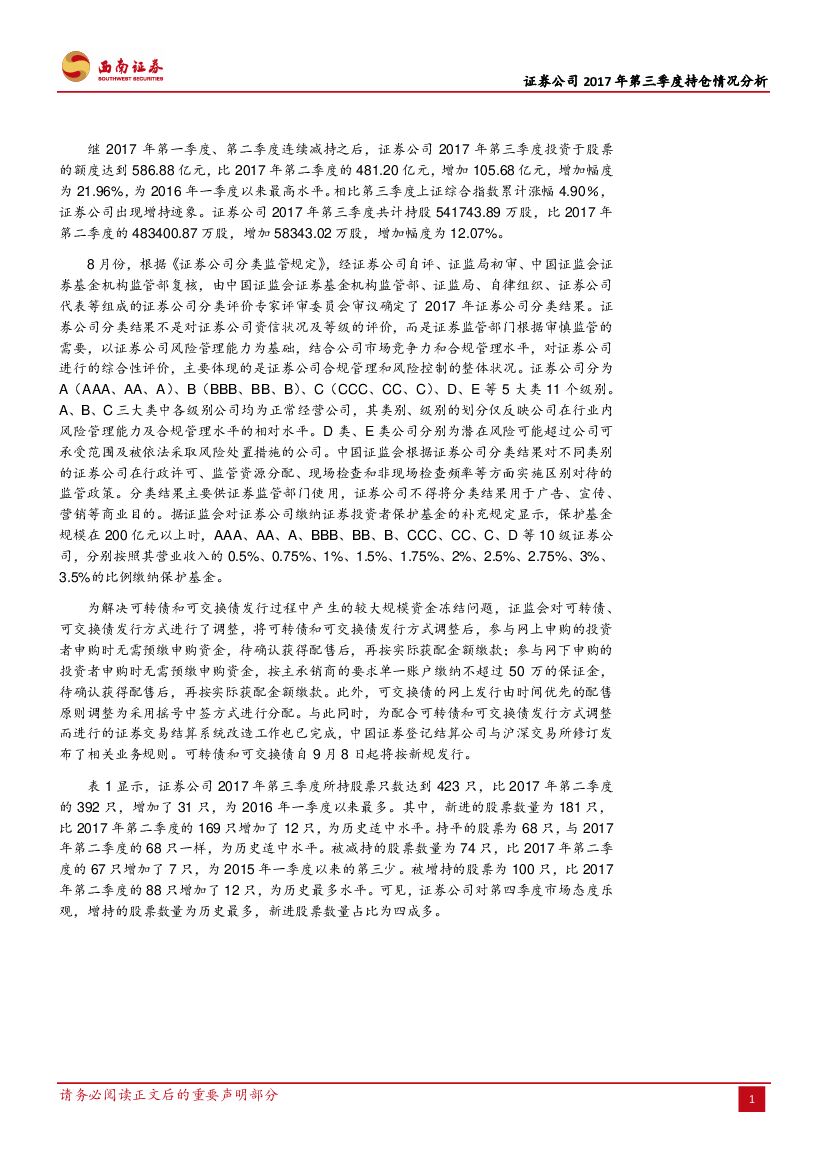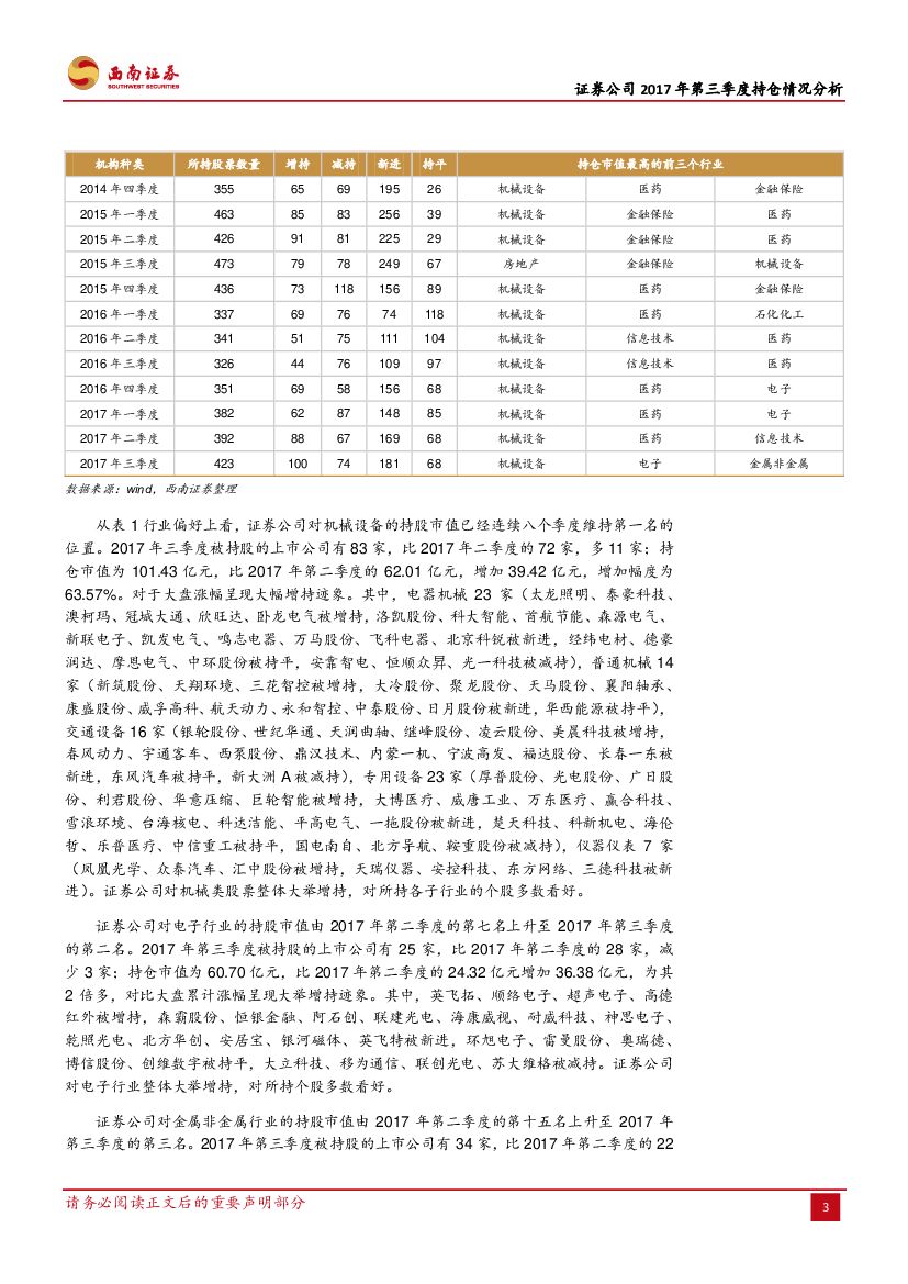 西南证券:证券公司2017年第三季度持仓情况分析:转为增持 市值为去年以来最高.pdf