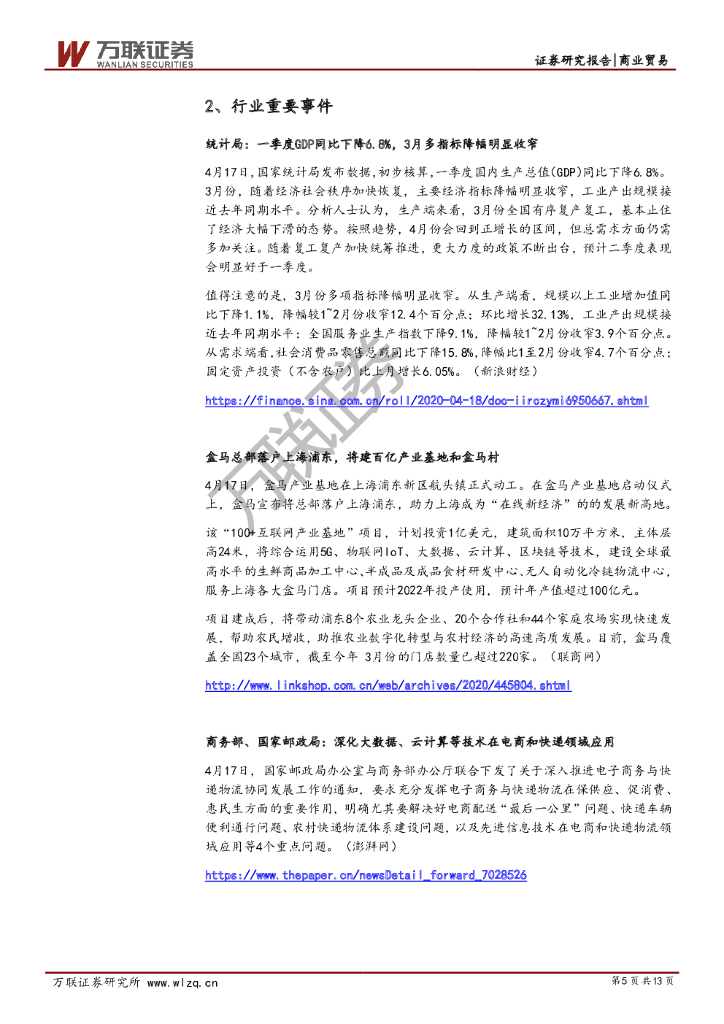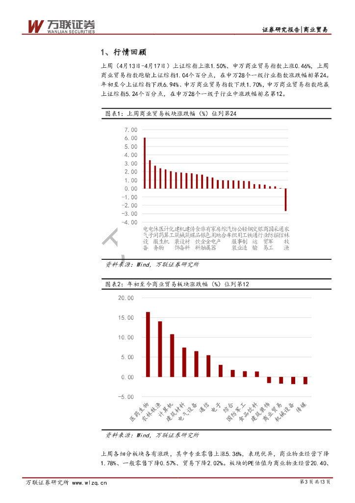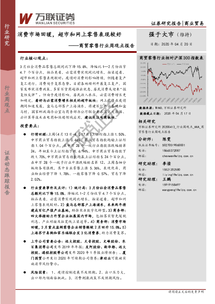 万联证券:商贸零售行业周观点报告:消费市场回暖,超市和网上零售表现较好.pdf