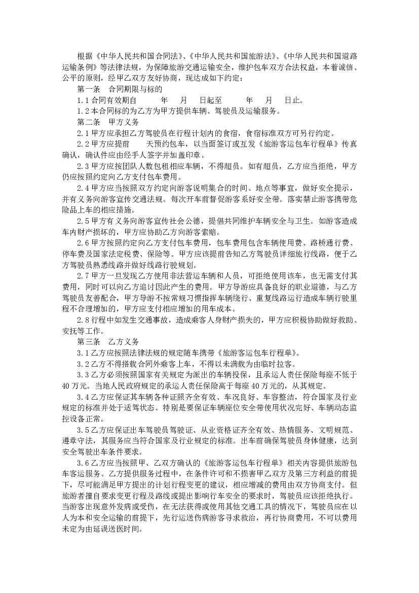 广西壮族自治区旅游客运包车合同示范文本(试行).pdf