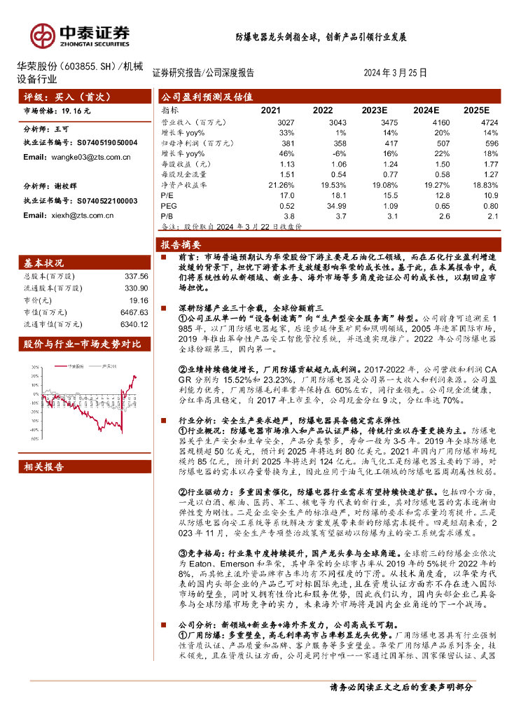 中泰证券:华荣股份(603855)-防爆电器龙头剑指全球,创新产品引领行业发展.pdf